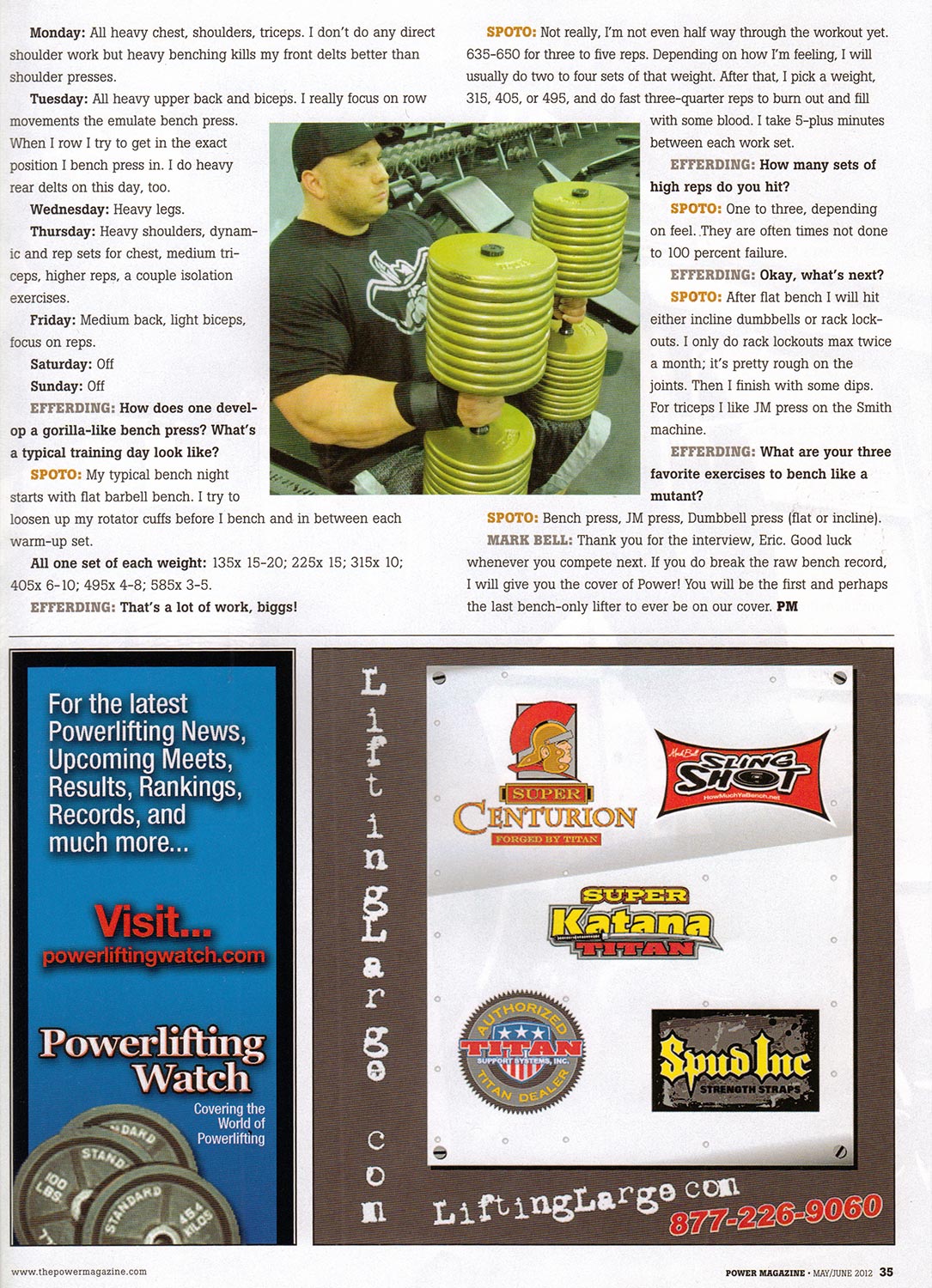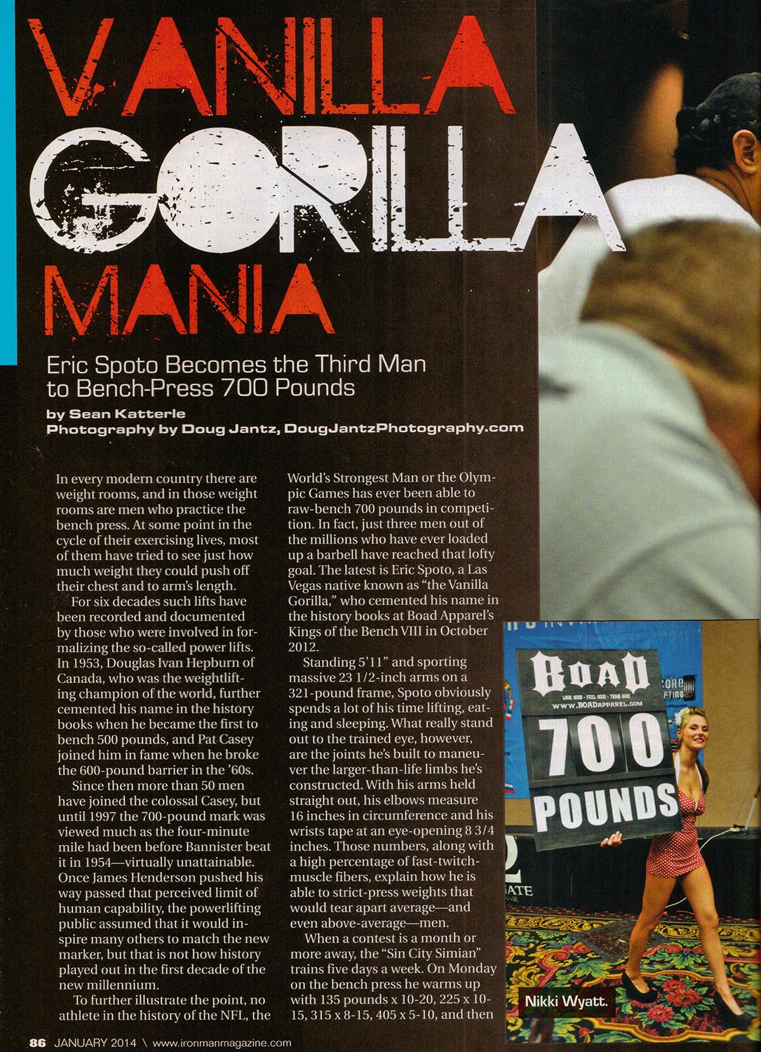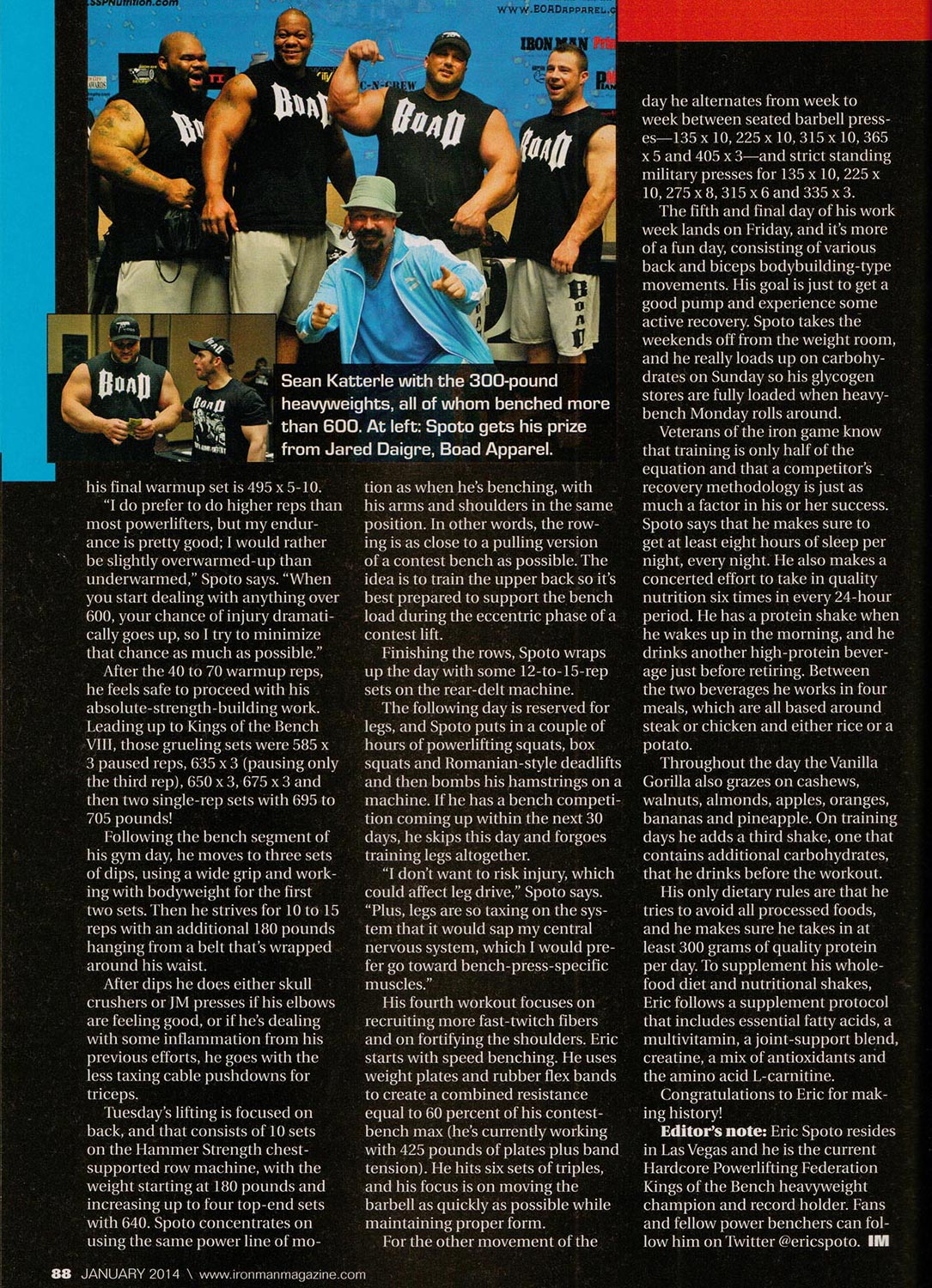 - Eric Spoto’s 700 Pound Raw Benchpress Training Routine Featured in The January 2014 Edition of IRON MAN Magazine | Sean Katterle Hardcore Powerlifting